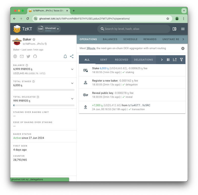 We have glossed over a lot of detail here, but there is nothing else you need to know to set up a baker on a test network. On a production setup you should do more to protect your keys.
